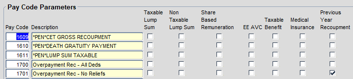 Just to reiterate, in order to ensure compliance with Revenue regulations, recoupments of overpayments should be notified to Revenue through the regular submission process. This is done through our system configuration where certain paycodes are identified as Overpayment recoupments in year/ out of year – see below